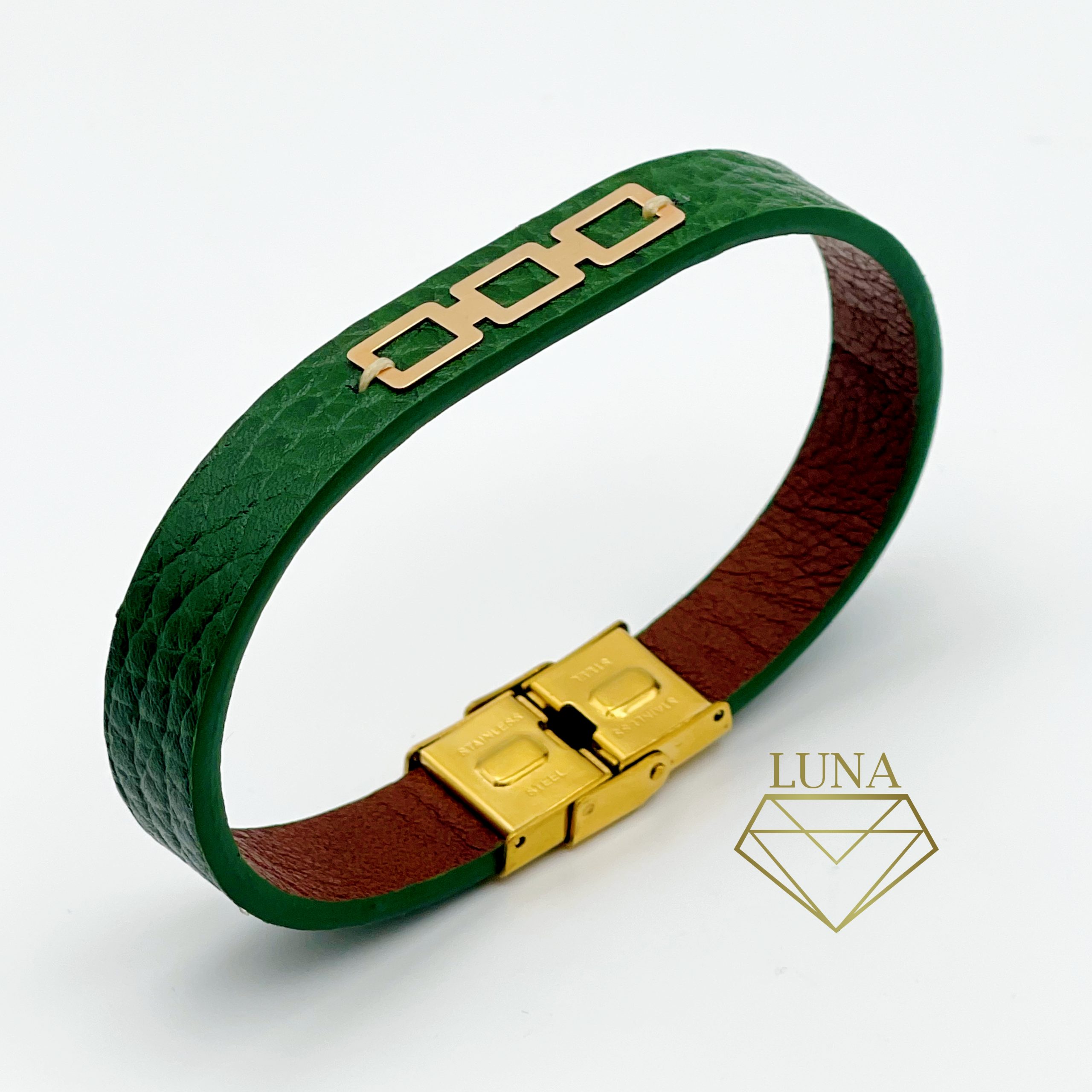 دستبند چرم و طلا سبز لونا، برای بهترین استایلت