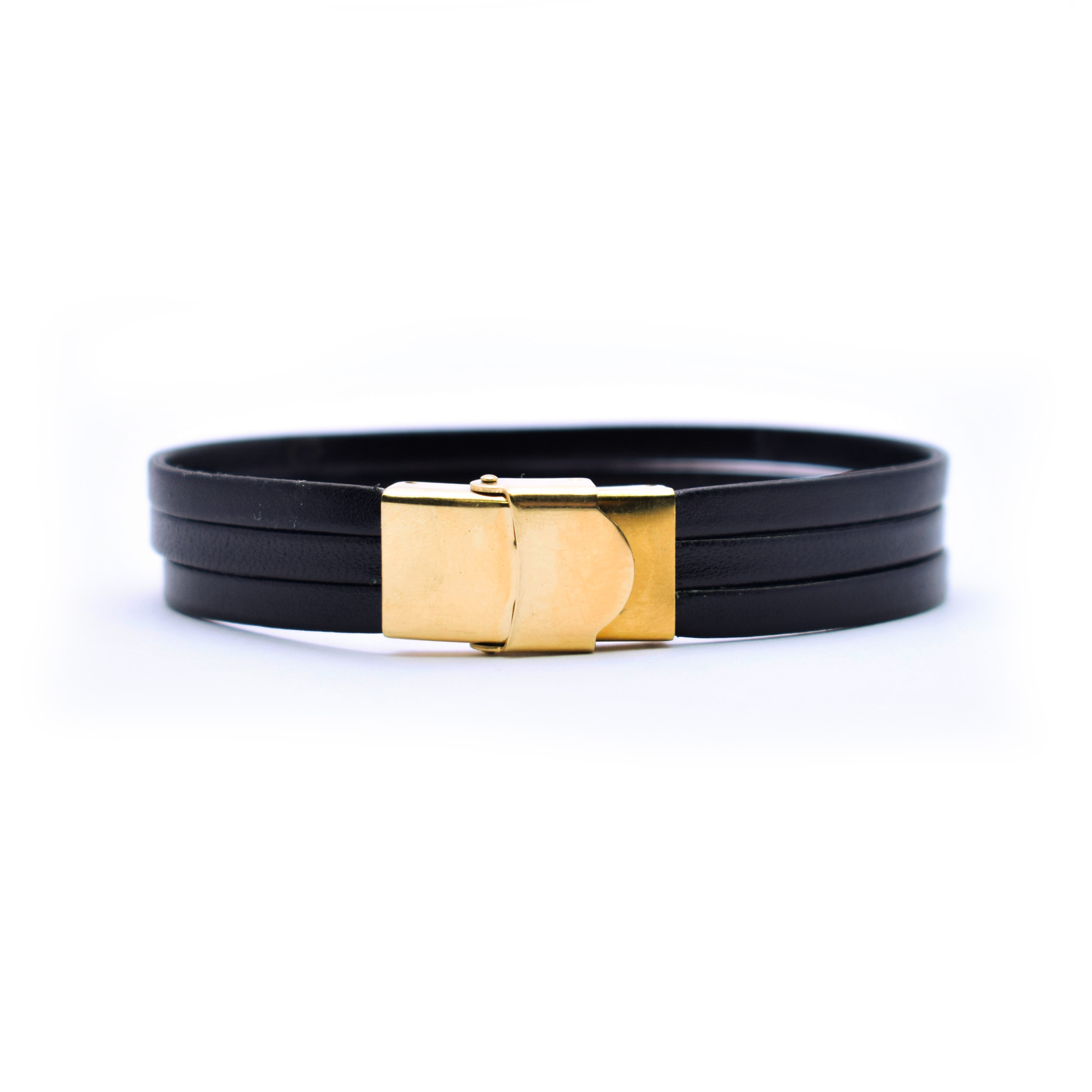 دستبند سه ردیف چرم و طلا لونا، برای بهترین استایلت